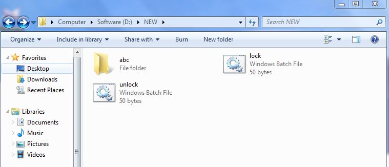 Place your personal files in that abc folder and open lock.bat file your file will be locked and will be unaccessible. To access the file open unlock.bat file.
